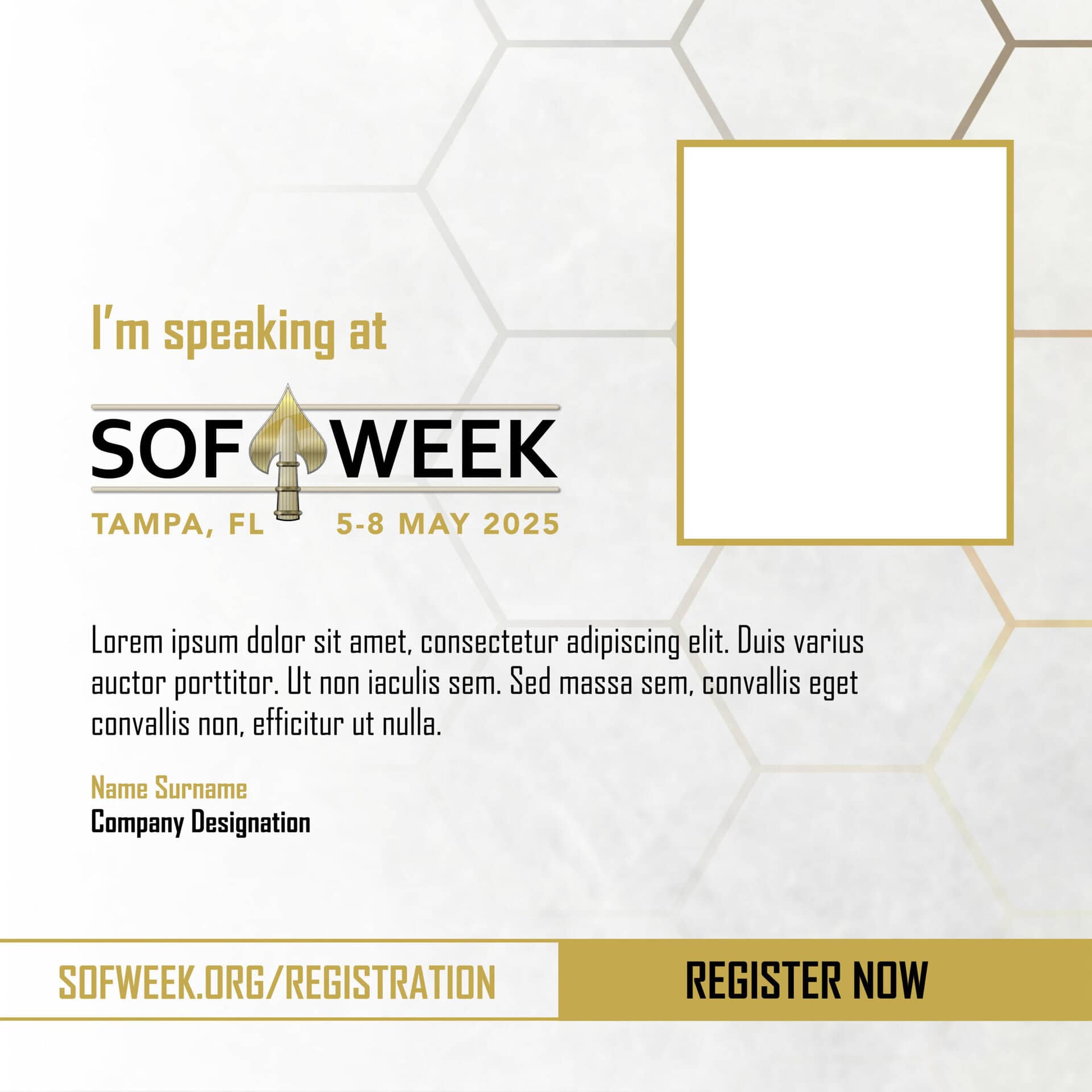 Tip: Some of the graphics in the SOF Week Media Kit are designed for you to customize! If you see a blank hexagon, that’s your cue to add your company logo and make it your own. It’s an easy way to boost your brand visibility and show off your participation at SOF Week.